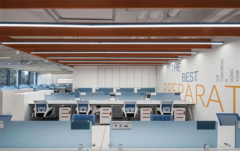 靜謐中疊出粼粼波光,讓本是凝固的空間,因人類與自然、時間與空間有了交疊,過往與未來也有了關聯;復行數十步,豁然開朗…"虛"與"實"相生為境,入:未來之境,獨特的構成方式、造型藝術感為人類電子產品護航;引進公共辦公區,公共辦公區的空間以原色調為主,讓整個辦公室設計看起來更為沉穩低調,營造出一種安靜沉淀的氛圍。趣味性的吧臺、參差的綠翼"無盡之柱",藝術創意品味的貫穿,享受與眾不同的辦公方式。