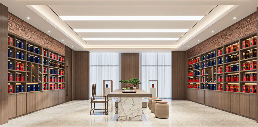 而在對外服務區域,則需要進一步劃分成幾個不同功用的子空間。呈靠墻排布,中間留一個相對寬敞的大廳。