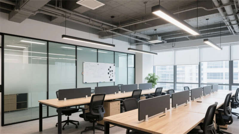 從前臺懸浮木紋臺面的企業標識,到開放式工位可變的模塊化組合,空間始終保持著“未完成”的進化基因。頭腦風暴區的可書寫玻璃墻記錄著思維軌跡,階梯培訓區的滑軌電源系統隨需求生長,智能會議室霧化玻璃在透明與私密間自由切換,專注電話艙的磨砂質感包裹著獨立思考的靜謐。高管辦公室的皮質座椅與垂直線條燈帶,隱喻著決策的柔韌與果決,而咖啡區黑板墻的手繪痕跡,則讓機械齒輪般的空間有了呼吸的節奏。