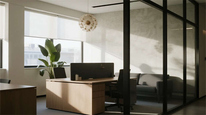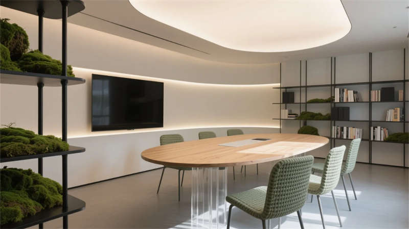 智能接待廳以流動(dòng)數(shù)字藝術(shù)傳遞先鋒調(diào)性,而健康茶水間則通過有機(jī)材質(zhì)與綠植裝置,構(gòu)建松弛有度的能量補(bǔ)給站。整體空間拒絕刻板分割,家具模塊可隨需求自由重組,金屬線條與低飽和色彩在自然光照下沉淀出理性而溫潤的質(zhì)感。