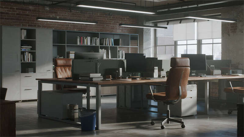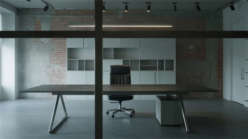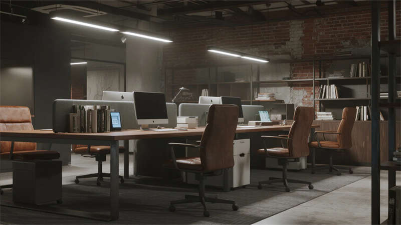 這組工業風辦公室設計以裸露結構和復古質感為核心,通過混凝土、金屬和木質材料的碰撞,打造出兼具實用性與藝術感的辦公空間。空間保留了建筑的原始肌理,如天花板的管線和墻面的磚紋,搭配黑色鐵藝家具和深色調軟裝,營造出冷峻而富有張力的氛圍。局部通過皮質沙發、綠植和暖光燈具軟化工業風的硬朗感,增添人文氣息。