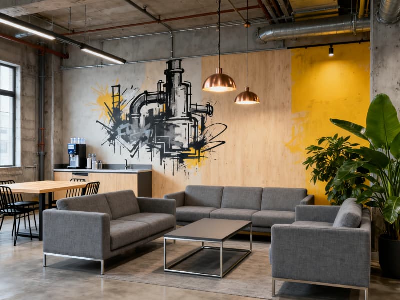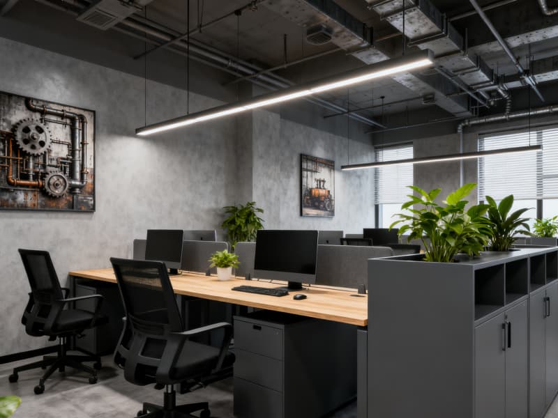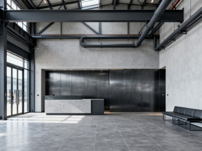 本設計聚焦6000平廠房的工業(yè)屬性與實用需求,以現代工業(yè)風為核心,打造高效、規(guī)范且兼具人文關懷的生產辦公空間。整體色調以深灰、淺灰、黑色為主,搭配局部橙色警示色與淺木色暖調,既契合工業(yè)空間的專業(yè)質感,又避免環(huán)境的冰冷與壓抑。