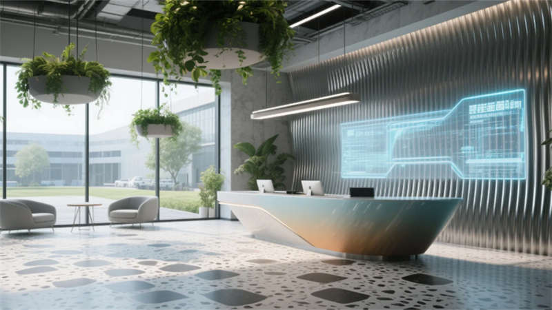 智能協(xié)作區(qū)配備環(huán)形數(shù)字屏幕與可書寫隔斷,激發(fā)團隊創(chuàng)造力;靜音艙體與獨立辦公室滿足深度工作需求。員工休憩區(qū)通過柔和的馬卡龍色調(diào)與曲線家具,營造松弛氛圍。接待廳的波紋金屬墻與全息投影臺,在溫潤木元素中點綴未來感。