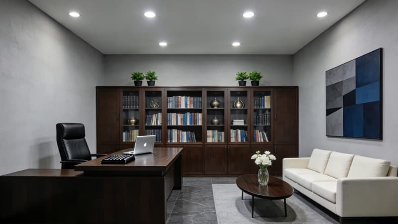 本案為蚌埠本土企業(yè)量身打造3000㎡全景式辦公室,以“地域文脈+現(xiàn)代辦公”為核心,將蚌埠淮河文化的溫婉底蘊(yùn)與當(dāng)代極簡(jiǎn)美學(xué)相融。大樓外觀采用玻璃幕墻搭配淺灰金屬線條,簡(jiǎn)約大氣中透著企業(yè)實(shí)力;前臺(tái)以溫潤(rùn)石材與局部蚌殼紋理裝飾,暗藏地域符號(hào)。開(kāi)放式辦公區(qū)規(guī)劃3個(gè)功能分區(qū),兼顧協(xié)作與私密,通透采光搭配靈活工位,適配多元辦公需求。經(jīng)理辦公室以沉穩(wěn)色系為主,嵌入定制收納系統(tǒng),平衡高效辦公與舒適體驗(yàn);總裁辦公室則融入輕奢元素,獨(dú)立茶歇區(qū)與全景落地窗結(jié)合,彰顯格局。會(huì)議室配備智能會(huì)議系統(tǒng),靈活切換研討、匯報(bào)等模式。整體設(shè)計(jì)既滿足3000㎡空間的功能分區(qū)合理性,又以細(xì)節(jié)傳遞蚌埠地域特質(zhì),為企業(yè)打造兼具實(shí)用性與品牌調(diào)性的辦公主場(chǎng)。