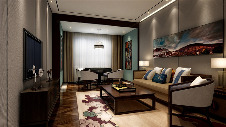設(shè)計師同時考慮到地域民族文化和功能實用性,結(jié)合現(xiàn)代簡約與傳統(tǒng)藏式風(fēng)格,為往來的游客提供一個放松休憩的完美場所。設(shè)計師主要運用藏藍(lán)、金黃、喇嘛紅等濃重色彩進(jìn)行搭配,靈感既來自于藏族傳統(tǒng)文化及宗教藝術(shù),也來自于雪域高原山高天藍(lán)水長花艷的自然景觀。借用柱網(wǎng)結(jié)構(gòu)、幾何紋路、吉祥花等藏式建筑形式和圖案進(jìn)行裝飾和點綴,但將繁復(fù)的式樣盡量精簡平面化,取其古樸、神奇、粗獷的神韻,表達(dá)一種平衡、對比、和諧統(tǒng)一的構(gòu)圖規(guī)律和審美思想。