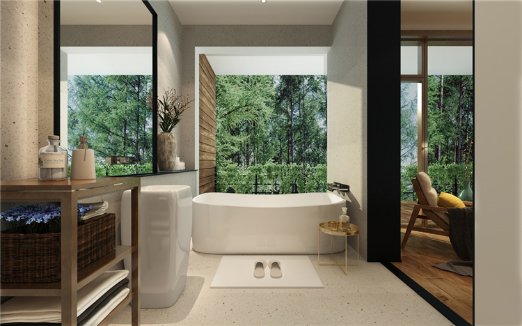 本案度假酒店設(shè)計(jì)依山傍水,設(shè)計(jì)師在規(guī)劃時(shí),充分考慮到自然環(huán)境帶給酒店的附加值。設(shè)計(jì)方案時(shí),設(shè)計(jì)師就將部分功能區(qū)規(guī)劃到室外露天場(chǎng)地,當(dāng)然在室內(nèi)設(shè)計(jì)中也充分利用了自然采光的設(shè)計(jì)手法,讓整個(gè)度假酒店與自然環(huán)境融為一體。