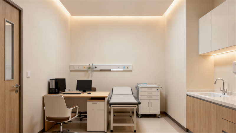 室內(nèi)空間延續(xù)外觀的簡約基調(diào),在材質(zhì)與色彩選擇上保持一致性。大廳以淺米色墻面搭配淺灰色地面,搭配暖白色燈光,營造出溫馨舒適的氛圍,緩解患者就醫(yī)時(shí)的緊張情緒;診室設(shè)計(jì)注重實(shí)用性與私密性,合理劃分診療區(qū)域與候診區(qū)域,墻面采用易清潔的環(huán)保材質(zhì),確保醫(yī)療環(huán)境的衛(wèi)生安全;病房以淺色系為主,搭配柔和的窗簾與溫馨的裝飾,為患者提供安靜舒適的康復(fù)環(huán)境,同時(shí)考慮到醫(yī)療需求,合理布置醫(yī)療設(shè)備擺放空間,兼顧舒適性與功能性;手術(shù)室采用潔凈度高的專業(yè)裝修材質(zhì),色調(diào)以純凈的白色為主,搭配藍(lán)色輔助色,營造出嚴(yán)謹(jǐn)專業(yè)的手術(shù)環(huán)境,確保手術(shù)過程的安全無菌;藥房設(shè)計(jì)注重藥品存儲(chǔ)的規(guī)范性與取藥流程的便捷性,合理劃分藥品分類區(qū)域,采用透明玻璃隔斷,提升取藥過程的透明度;護(hù)士站設(shè)計(jì)為開放式與半封閉式結(jié)合,方便護(hù)士與患者溝通,同時(shí)保證護(hù)士工作區(qū)域的有序性;康復(fù)訓(xùn)練室則根據(jù)康復(fù)需求,合理規(guī)劃訓(xùn)練區(qū)域,搭配適合康復(fù)訓(xùn)練的器械與柔和的空間色調(diào),為患者提供舒適的康復(fù)訓(xùn)練環(huán)境。整體裝修設(shè)計(jì)從患者需求與醫(yī)療功能出發(fā),在風(fēng)格統(tǒng)一的基礎(chǔ)上,實(shí)現(xiàn)了不同空間的功能適配,打造出兼具溫馨感與專業(yè)性的現(xiàn)代化醫(yī)院空間