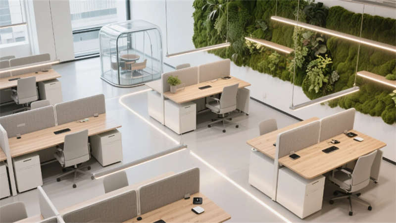 生態(tài)科技體系覆蓋全場(chǎng)景:經(jīng)理辦公室苔蘚墻集成空氣監(jiān)測(cè)系統(tǒng),總裁室霧化玻璃聯(lián)動(dòng)光伏發(fā)電,小會(huì)議室綠植墻搭載微滴灌節(jié)水裝置。材質(zhì)選用安徽本土元素升級(jí)再造,大廳水磨石摻入大別山礦石粉,定制地毯紋樣提取徽派窗欞數(shù)字化變體。
