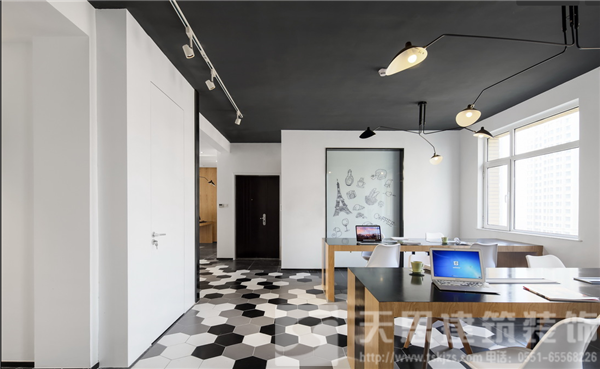 鋼化玻璃、仿木紋瓷磚、布藝窗簾、辦公隔斷