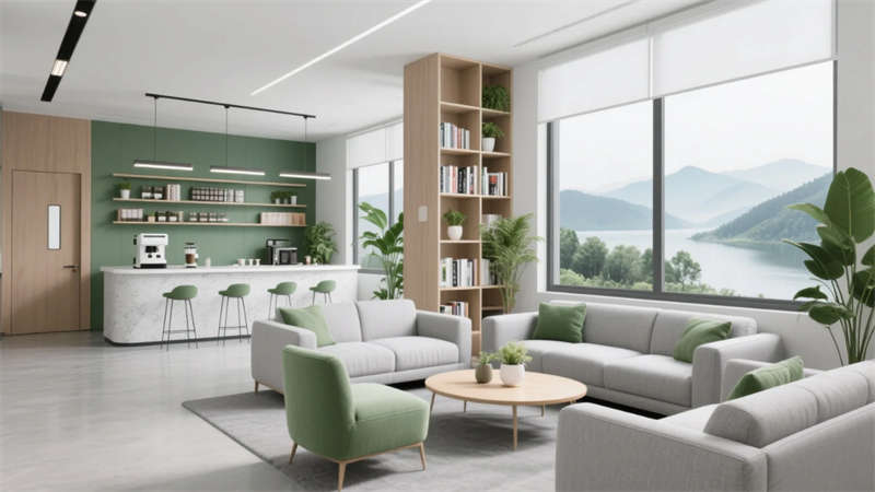這座辦公室設(shè)計以滁州為靈感,融合自然與創(chuàng)新元素,打造出和諧高效的工作環(huán)境。整體采用現(xiàn)代簡約風(fēng)格,線條流暢而開放,中性色調(diào)搭配木質(zhì)細節(jié),營造出清爽視覺統(tǒng)一感。設(shè)計中強調(diào)生態(tài)連接:綠植貫穿各功能區(qū),如休息區(qū)的山水窗景和協(xié)作區(qū)的綠植墻,呼應(yīng)滁州的自然環(huán)境,提升員工舒適度與歸屬感。核心亮點在于靈活空間規(guī)劃——模塊化家具和可移動隔斷支持快速重組,適應(yīng)不同工作模式,從專注區(qū)到協(xié)作區(qū),無縫切換個人與團隊需求。茶水間和休息區(qū)融入社交元素,鼓勵非正式交流,而經(jīng)理辦公室的私密會談區(qū)則平衡了效率與人文關(guān)懷。照明設(shè)計巧妙利用自然光與LED結(jié)合,減少能耗,同時綠植點綴凈化空氣,體現(xiàn)可持續(xù)理念。最終,空間不僅提升生產(chǎn)力,更成為滁州城市活力的縮影,彰顯現(xiàn)代辦公的進化方向。