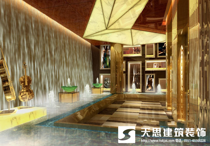 合肥潮流KTV裝修設計,金銅色的燈光耀眼而又溫馨,大理石般的地板,更是襯托出了大廳的華麗,合肥潮流KTV是合肥天思裝飾設計師經過自己多年對成都KTV裝修設計的經驗和自己對KTV的裝修設計理解創造出這溫馨而又時尚的裝修設計,讓消費者非常滿意我們設計師的創造理念,這也是我們設計師對成都KTV裝修設計的一種意境。
