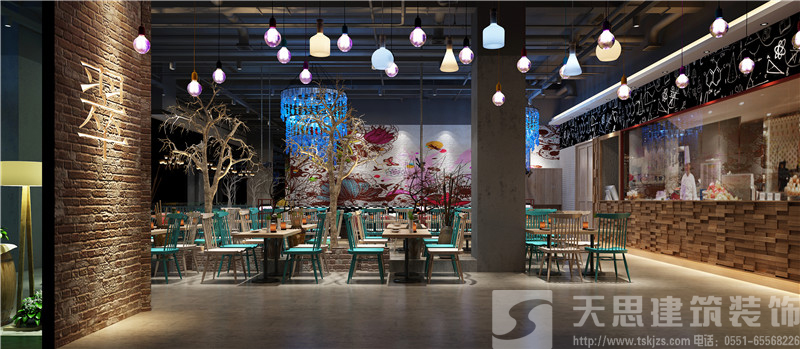 現代餐廳風格迎合了青少年們的品味,燈飾非常漂亮