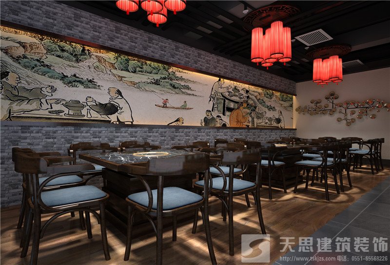 火鍋店是全國上下都喜歡的美食,起源于四川,遍布于全國甚至全球。人們不但在這里享受美食帶來的快樂,同時也開展人際交往、增進感情等活動和作用。讓顧客安全、愉快、舒暢地享受美食的樂趣,享受人際交往的樂趣,是一個裝修公司的重要任務。天思裝飾擁有多年的裝修施工和設計經驗,專業化的設計視角打造特色的火鍋店裝修。在企業營銷活動中借鑒各類文化因素,有效地豐富餐飲品牌的內涵。對于火鍋店的裝修也要花些心思,才能提高餐飲店的鮮明的個性和地域特色。天思裝飾,專業的合肥火鍋店裝修設計公司,還提供合肥火鍋店裝修報價和經典的火鍋店裝修效果圖,并承接外地的火鍋店裝修設計及施工。