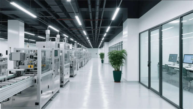 這座廠房以"工業(yè)容器中的自然共生"為核心理念,打破傳統(tǒng)生產(chǎn)空間的冰冷邊界。流動的銀灰主調(diào)串聯(lián)起全場景,裸露的結(jié)構(gòu)肌理與溫潤木元素形成張力碰撞,智能設(shè)備在光影交織中高效運(yùn)轉(zhuǎn)。