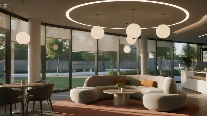 辦公系統實現人性化分層:開放式工位促進團隊協作,經理室玻璃隔斷保持溝通透明,總裁空間則通過地域景觀藝術品傳遞領導力視野。休憩區植入生態庭院,本土植物與耐候鋼材質模糊室內外界限。