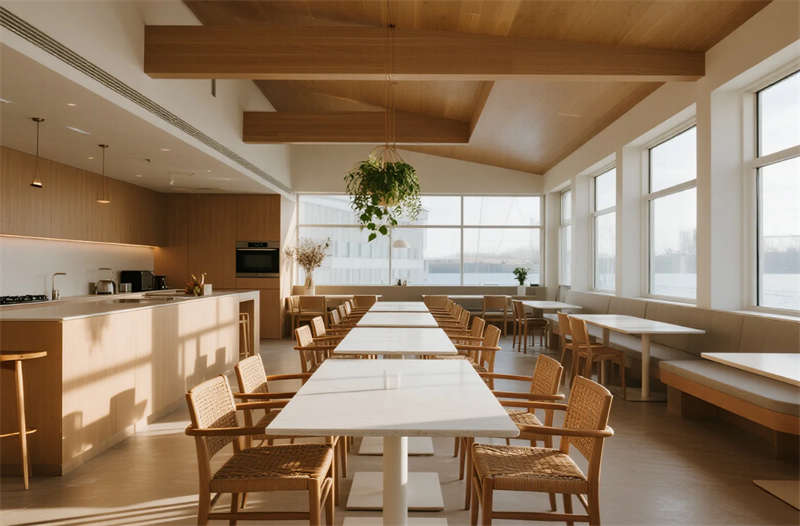 該設計以“城市綠洲”為核心理念,打造兼具功能與美學的經濟型住宿空間。建筑外觀采用干凈利落的幾何切割,淺灰與玻璃材質碰撞出輕盈現(xiàn)代感,入口綠植墻軟化都市冷硬氛圍。內部空間貫徹簡約哲學:模塊化家具系統(tǒng)最大化利用面積,榻榻米客房集成儲物與休憩功能,隱藏式燈光營造舒緩氛圍。公共區(qū)域強調共享與自然連接,早餐區(qū)落地窗引入晨光,綠植點綴的休息區(qū)提供社交場景。材質選擇克制而統(tǒng)一,淺木色、微水泥與亞麻織物構成低飽和度基調,局部點綴抽象線條藝術,呼應合肥現(xiàn)代都市氣質。設計聚焦高效運營與人文關懷,通過智能分區(qū)和環(huán)保細節(jié),為旅客提供回歸本質的寧靜棲居體驗。