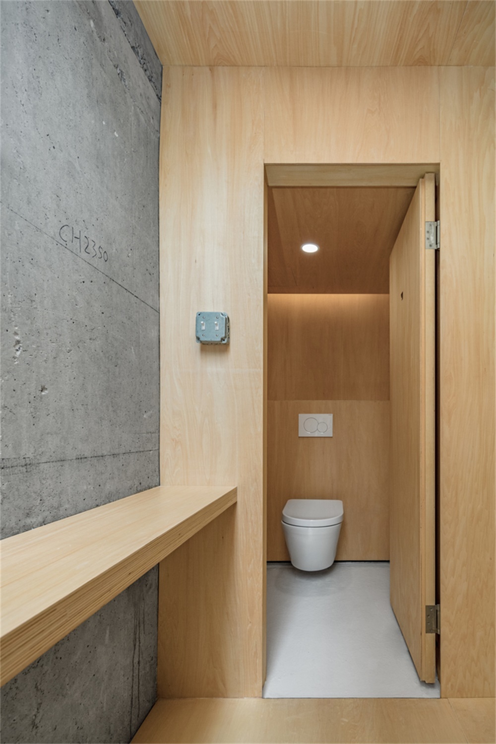 建筑四周圍繞著老式居民樓,為了使其呼應(yīng)周圍居住環(huán)境的氛圍,特意保留了原有立面具有歷史質(zhì)感的青磚。此外,在外立面的門窗的位置和進(jìn)深的設(shè)計上,結(jié)合整個建筑比例和室內(nèi)布局以數(shù)十厘米為單位進(jìn)行了微調(diào),使得室內(nèi)視野開敞且采光充足。金屬窗框的更換和進(jìn)深的加深則為民宿增添了空間浸入感。