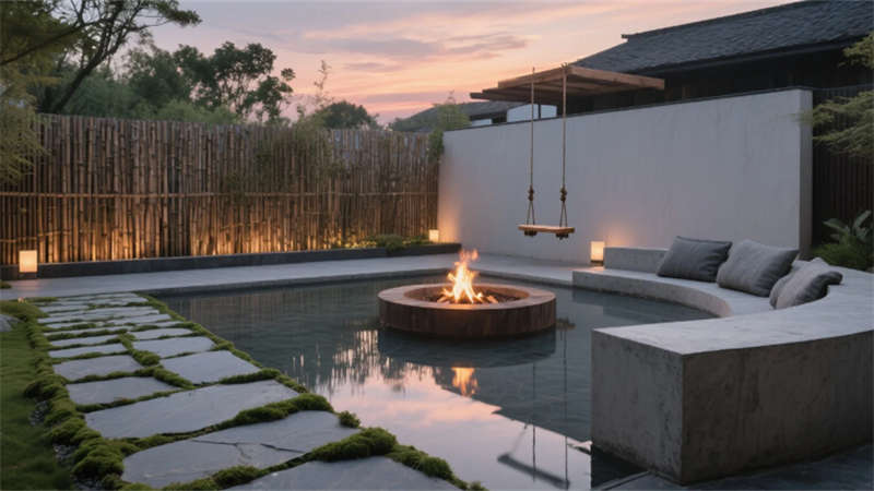 從庭院下沉式火塘的竹影搖曳,到接待臺金屬浮雕的抽象城市地圖,設計以克制的自然材質、低飽和色系與智能化細節,重構現代人對“在地旅居”的想象——讓合肥不止于驛站,更成為一場沉浸式自然人文體驗。
