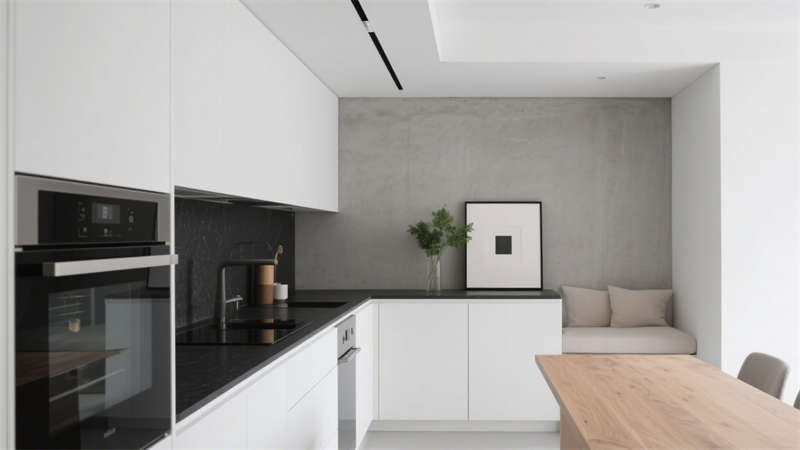 本設計以現代簡約為核心,融合都市生活美學與實用功能。空間采用灰白黑中性色調,搭配原木元素增添溫潤質感,通過簡潔線條與無冗余裝飾營造通透感。開放式布局增強空間互動,嵌入式燈光設計凸顯層次,落地窗引入自然光線與城市景觀。材質上選用啞光水泥、清玻璃與淺色布藝,軟裝以綠植和極簡裝飾畫點綴,整體呈現舒適雅致的居住氛圍,滿足現代都市人群對簡約生活品質的追求。