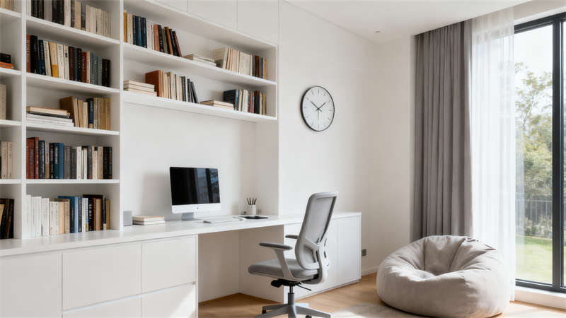 室內(nèi)空間延續(xù)整體風格,客廳注重通透感,大面積采光讓空間更顯開闊,簡約款式的家具搭配棉麻質(zhì)感的軟裝,營造出溫馨放松的休憩氛圍;餐廳將實用性與美學結(jié)合,簡約餐桌椅搭配暖光吊燈,讓用餐時光更具儀式感;臥室以柔和色調(diào)為主,舒適床品與隱藏式收納設(shè)計,既保證了居住的舒適度,又維持了空間的整潔簡約;廚房采用簡潔的櫥柜設(shè)計,合理規(guī)劃動線,讓操作更便捷;衛(wèi)生間注重干濕分離,選用耐磨易清潔的材質(zhì),搭配簡約衛(wèi)浴潔具,保持空間清爽;書房/休閑區(qū)則以簡約書架與舒適座椅為主,營造出安靜專注的閱讀或工作環(huán)境,整體設(shè)計處處體現(xiàn)現(xiàn)代簡約的核心,為住客帶來愜意的居住體驗。