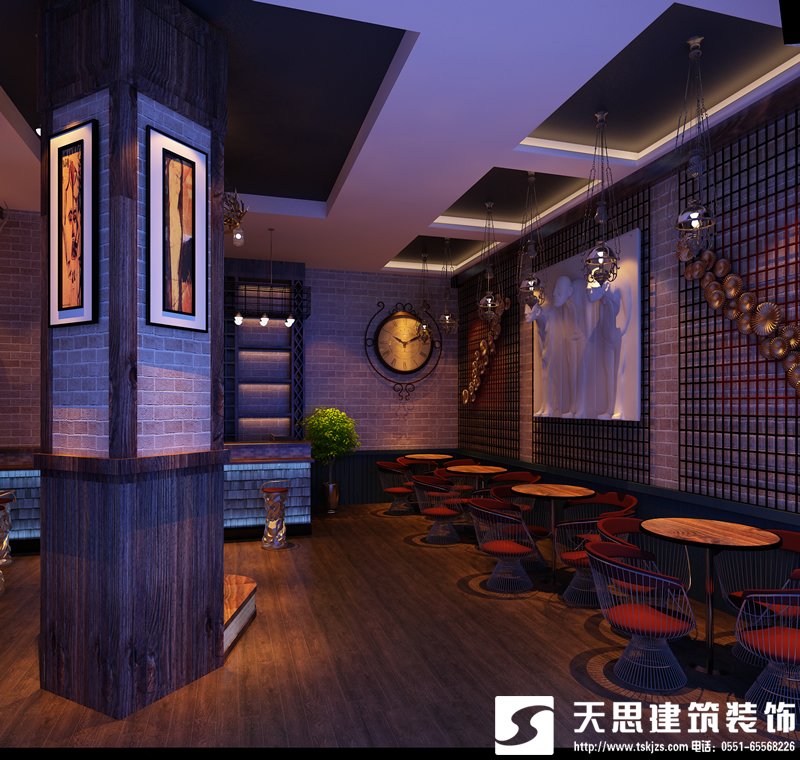 設計手法采用鄉村格調與現代簡約風格相結合,仿古造舊處理營造出質樸自然風格與點綴的綠植配合,就像沙漠中一葉翩翩的綠洲,承載著我們無線的希望,它抹除奇幻世界,抹除美麗清新,更抹除韻味悠然。