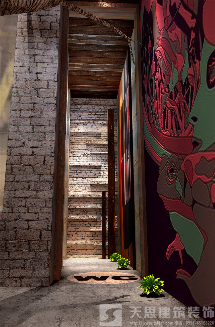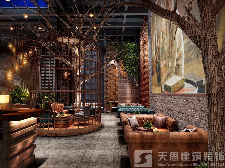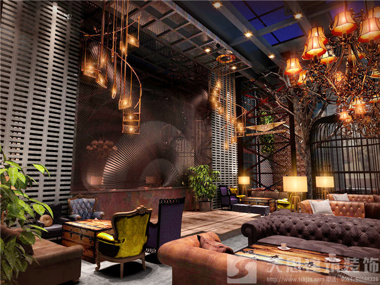 逆向思維的設計方式可見一斑,元素多為金屬鋼鐵、老榆木、清水混凝土等自然普通材質。當這些材質與彩色燈帶彼此碰撞,律動感瞬間迸發而出,同時他巧妙運用反襯和撞色技巧塑造了空間,并未刻意用常規的大面積燈光來營造絢麗空間,反而有意料之外的驚喜。鏤空隔斷打造開放式格局,讓每一位顧客感受到流暢開闊的空間構造,敞開心扉放肆的在I FINE酒咖尋找自我。