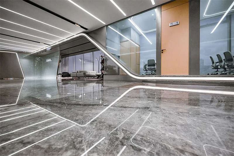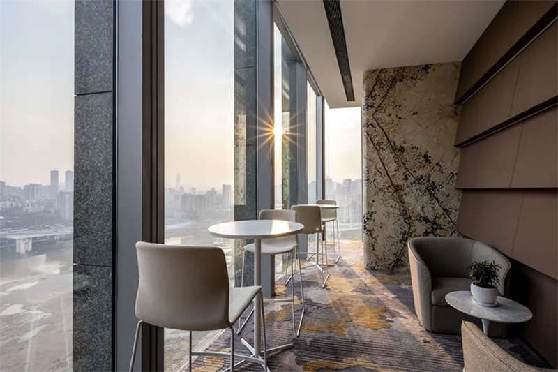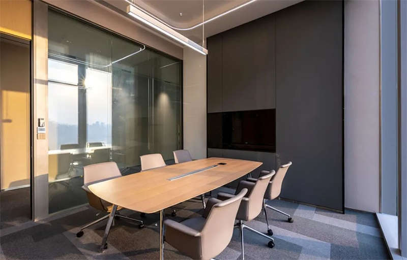 此辦公場所融合行業(yè)范式、藝術(shù)、辦公、會客和休閑功能,豐富的城市景觀與奢華的家具用材將空間美學統(tǒng)一起來,落地窗獲得更多明亮場域,空間通透舒朗,客戶進入空間能感受到簡潔明亮的氛圍。