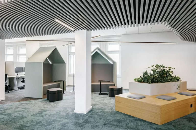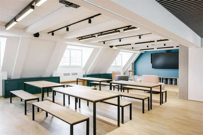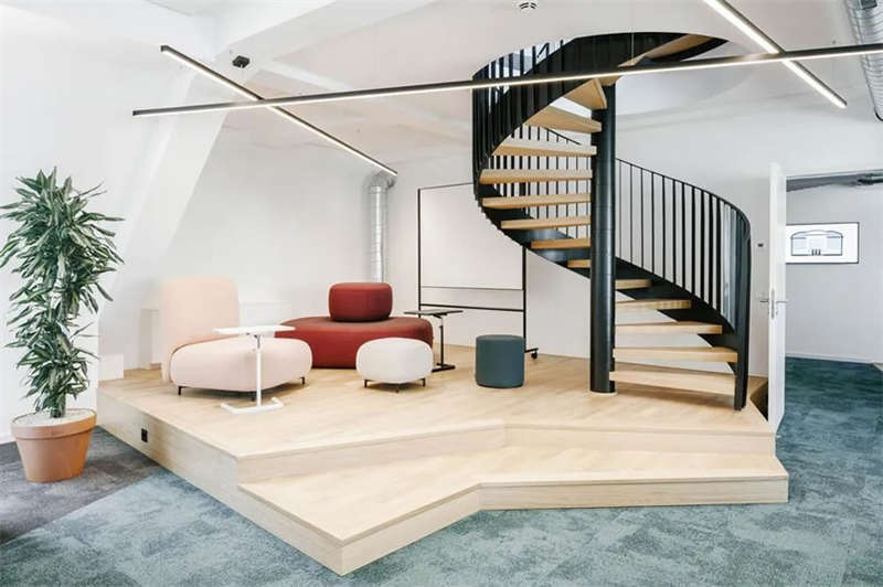 在與客戶的密切合作以及對(duì)方員工的積極參與下,設(shè)計(jì)師成功創(chuàng)建了一處精彩的工作空間,在這里,人們可以集中精力專注工作,也可以隨時(shí)隨地進(jìn)行各種不同的協(xié)作、交流、互動(dòng)和頭腦風(fēng)暴。各種不同主題的廳廊空間、靈活多元的協(xié)作空間、以及巨大的屋頂露臺(tái),讓這處空間變得獨(dú)一無二。空間隨著人們的移動(dòng)不斷變化著景觀視線和功能場景,豐富而精彩的設(shè)計(jì)讓這里步移景異,充滿驚喜和樂趣。