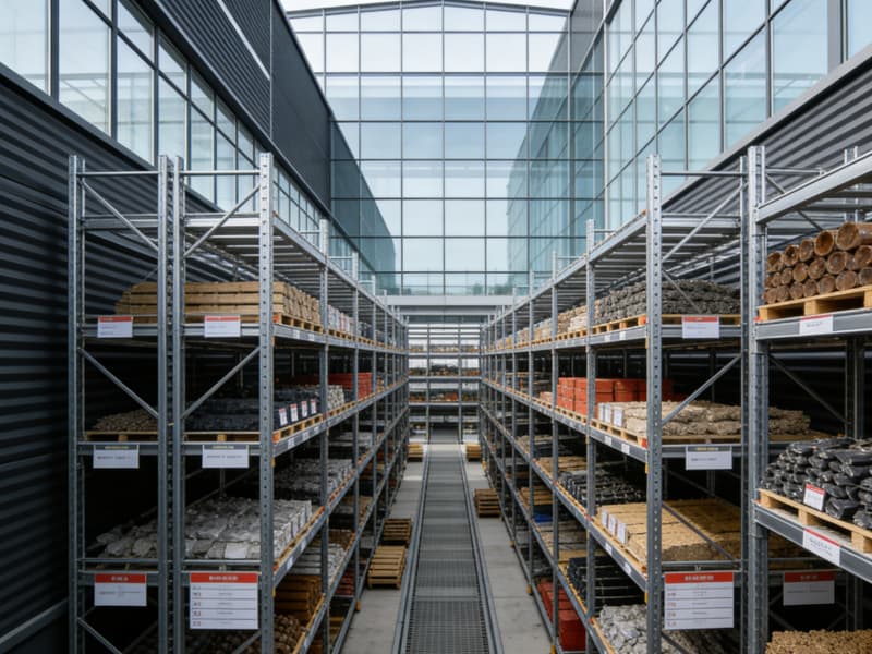 原料存儲(chǔ)區(qū)運(yùn)用立體式金屬貨架,極大提升空間利用率,不同類別的原料分區(qū)明確,標(biāo)識(shí)清晰,方便取用與管理。