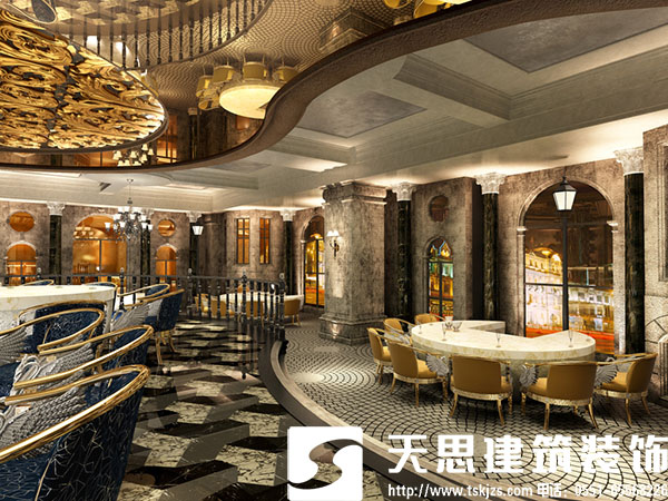 西餐廳室內(nèi)空間裝修一般傾向于商業(yè)性質(zhì)的,把主題形象化是關(guān)鍵。可是,太直截了當?shù)亟淮鲋黝},露多藏少,則缺乏情趣,反而難以打動顧客,這也就是西餐廳裝修的藝術(shù)問題。主題的表現(xiàn)宜采用暗示、隱喻等含蓄的表現(xiàn)手法。