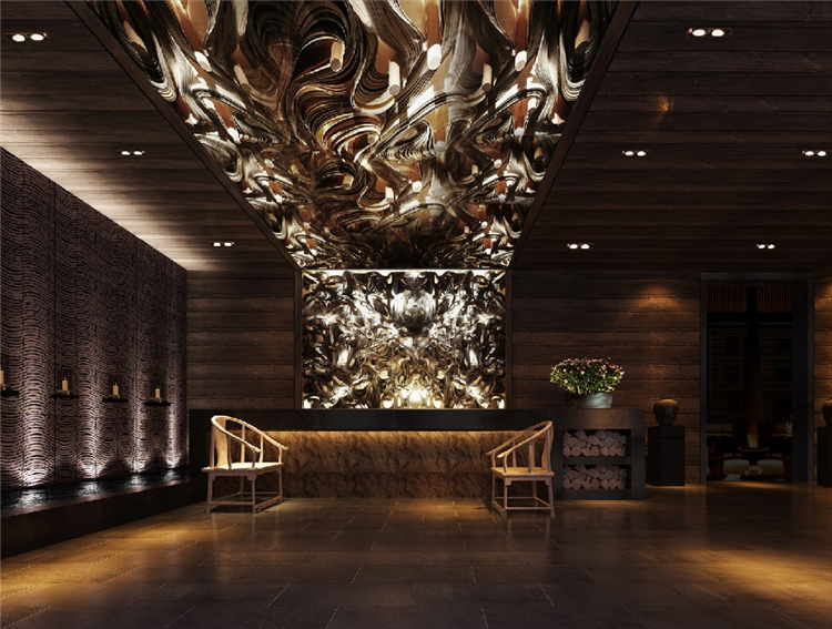 投資方希望打造一個具有民族特色又同時具備國際化背景的星級度假類型的酒店設計。對傳統文化的有機傳承和再創造是設計師始終思考的命題。以山、水、鼓、火、圖騰犬五大元素為主線貫穿于室內設計中。