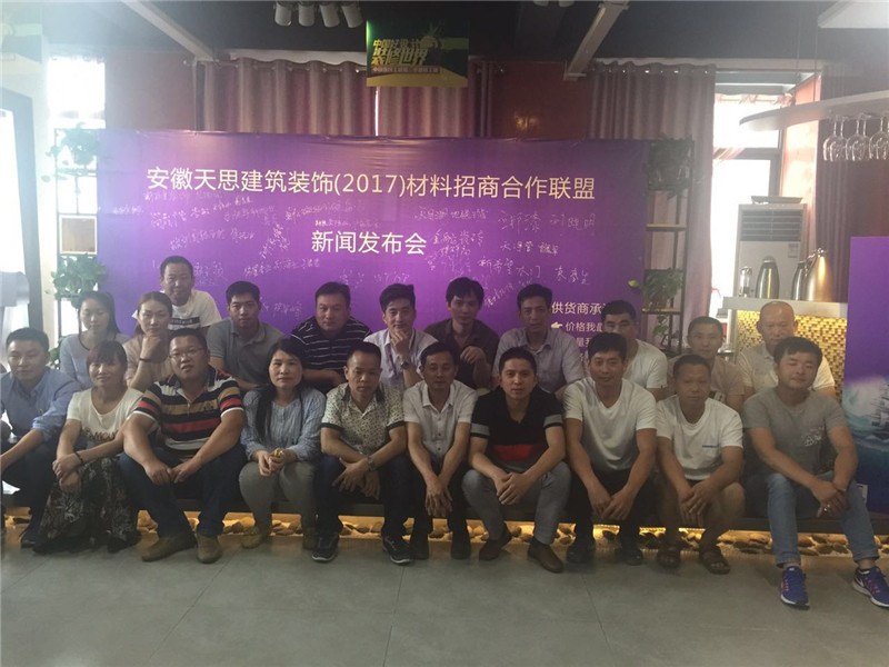 2017年6月4日,安徽天思建筑裝飾(2017)材料招商合作聯(lián)盟新聞發(fā)布會(huì)在合肥公司召開,來自合肥的三十余家知名材料商代表與天思裝飾公司領(lǐng)導(dǎo)齊聚一堂,共敘商情。在天思這個(gè)平臺(tái)上