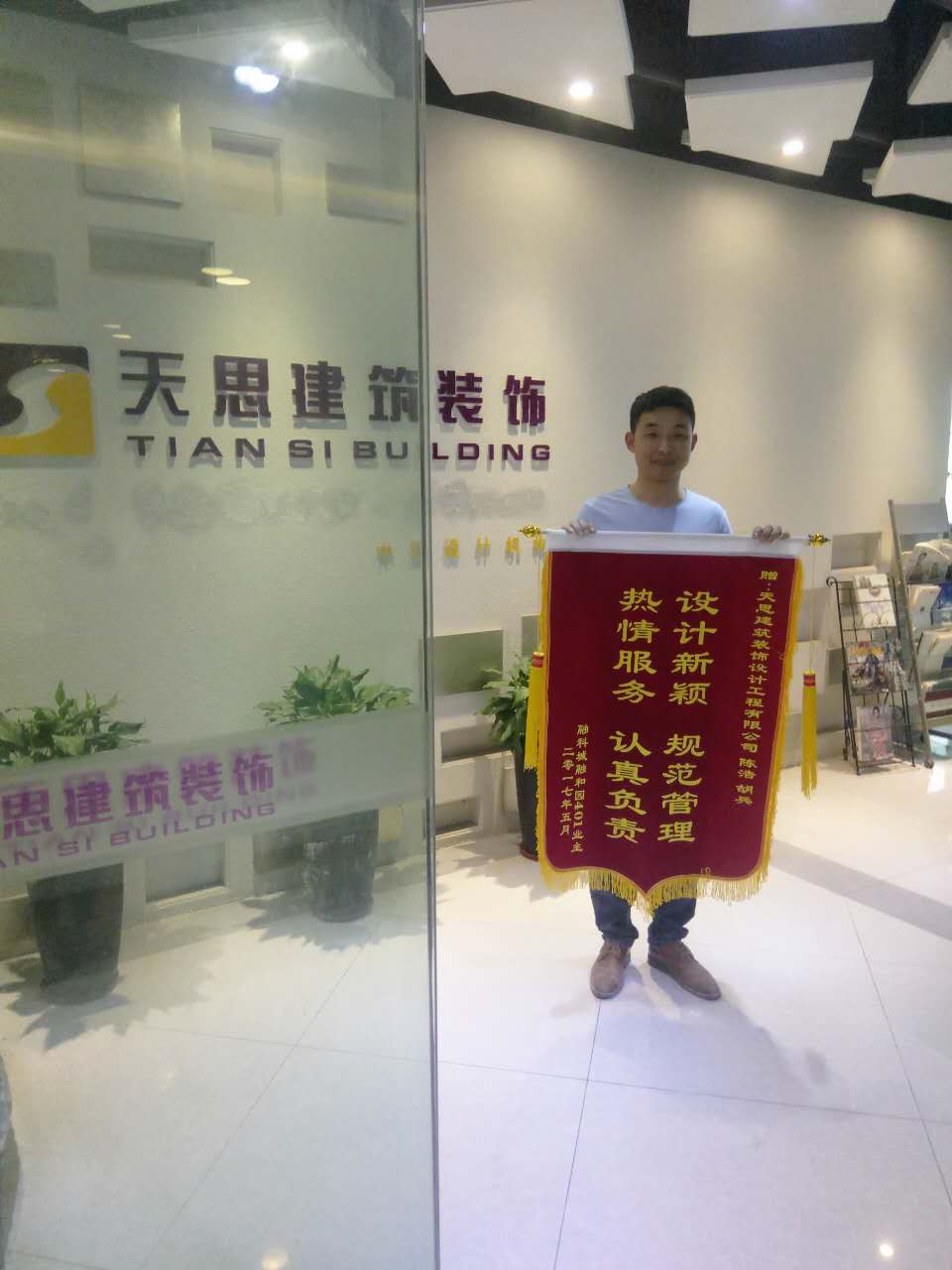 “服務熱情素質好,辦事認真效率高”是業主對天思裝飾的肯定。一直以來,天思裝飾的全體員工都盡力做好每一家的裝修工程,同時,業主為天思裝飾送來錦旗,也讓我們很是感動。