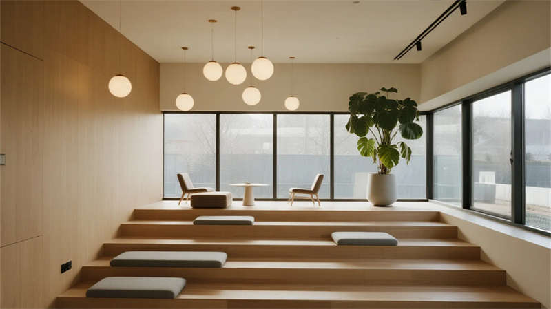 人性化細節貫穿始終——階梯休息區木色臺階軟化空間硬度,球形燈組如懸浮星辰;走廊通過精準的光帶設計,將功能通道轉化為光影藝術長廊;會議室電子玻璃白板與磁吸燈光系統,則體現智能與極簡的融合。項目扎根蕪湖工業土壤,以克制的設計語言實現工業建筑的功能升維,讓理性空間煥發靜謐詩意,成為現代制造美學的實體宣言。