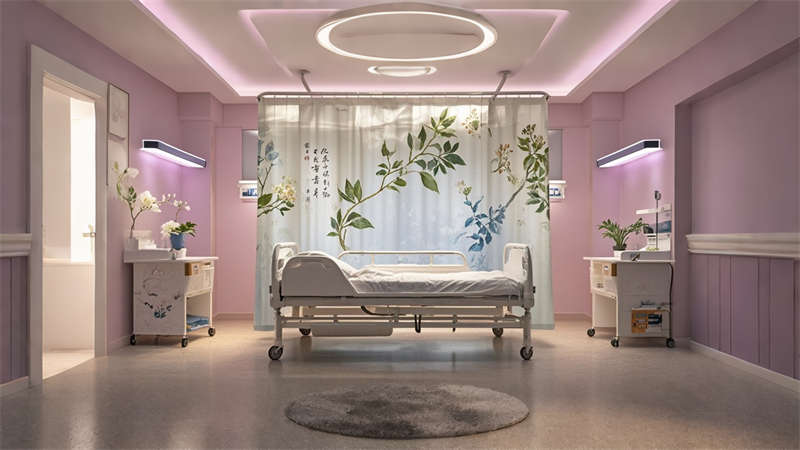 本2000平中醫(yī)院設(shè)計(jì)融合傳統(tǒng)中醫(yī)文化與現(xiàn)代醫(yī)療功能,采用 ' 療愈之境 ' 核心理念。空間規(guī)劃采用 ' 回' 字形動(dòng)線,門診、診療、康復(fù)三大功能模塊環(huán)繞中央庭院布局。色彩體系以米白、淺灰為基底,點(diǎn)綴赭石、黛青等傳統(tǒng)中藥色彩,墻面肌理漆模擬紙張質(zhì)感呼應(yīng)古籍文獻(xiàn)。診療區(qū)域采用模塊化隔斷系統(tǒng),兼顧隱私與通風(fēng)需求。智能照明系統(tǒng)可模擬晝夜節(jié)律變化,候診區(qū)座椅集成無(wú)線充電功能。重點(diǎn)區(qū)域設(shè)置 AR 中醫(yī)文化互動(dòng)裝置,住院部走廊每 10 米設(shè)置中藥香薰擴(kuò)散點(diǎn)。材料選擇注重環(huán)保性與耐久性,地面采用防菌 PVC 卷材,墻面使用易清潔的納米涂層。整體設(shè)計(jì)通過(guò)現(xiàn)代設(shè)計(jì)語(yǔ)言詮釋中醫(yī) ' 天人合一 ' 理念,打造兼具專業(yè)醫(yī)療功能與人文關(guān)懷的現(xiàn)代化中醫(yī)院空間。
